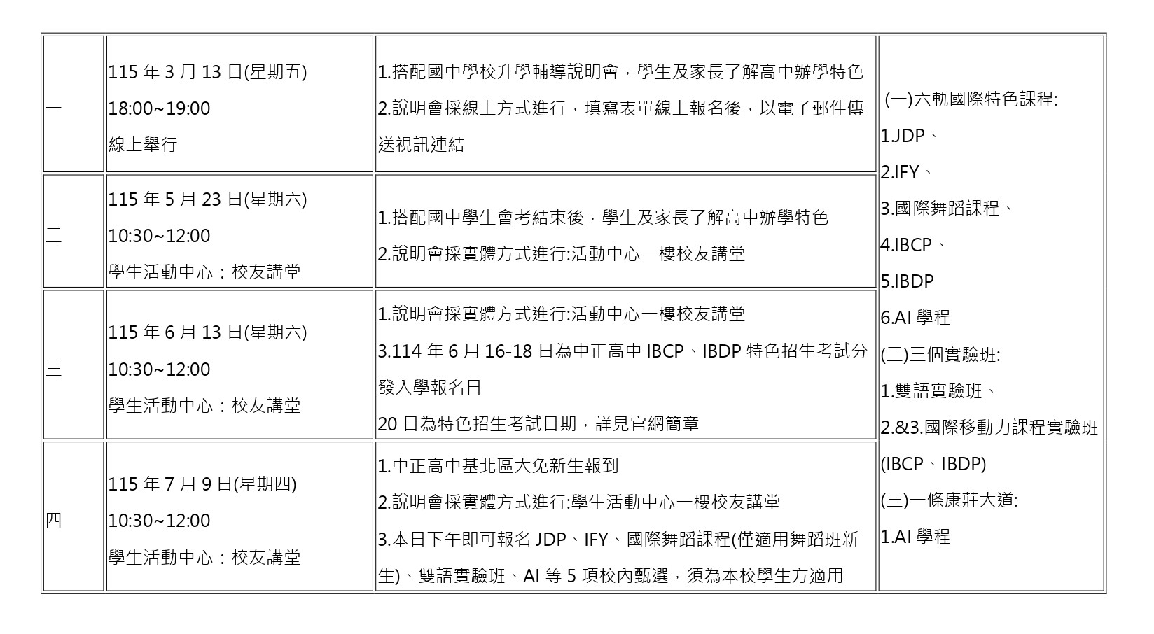 本校辦理四場國際課程及特色招生說明會,針對五軌國際特色課程: