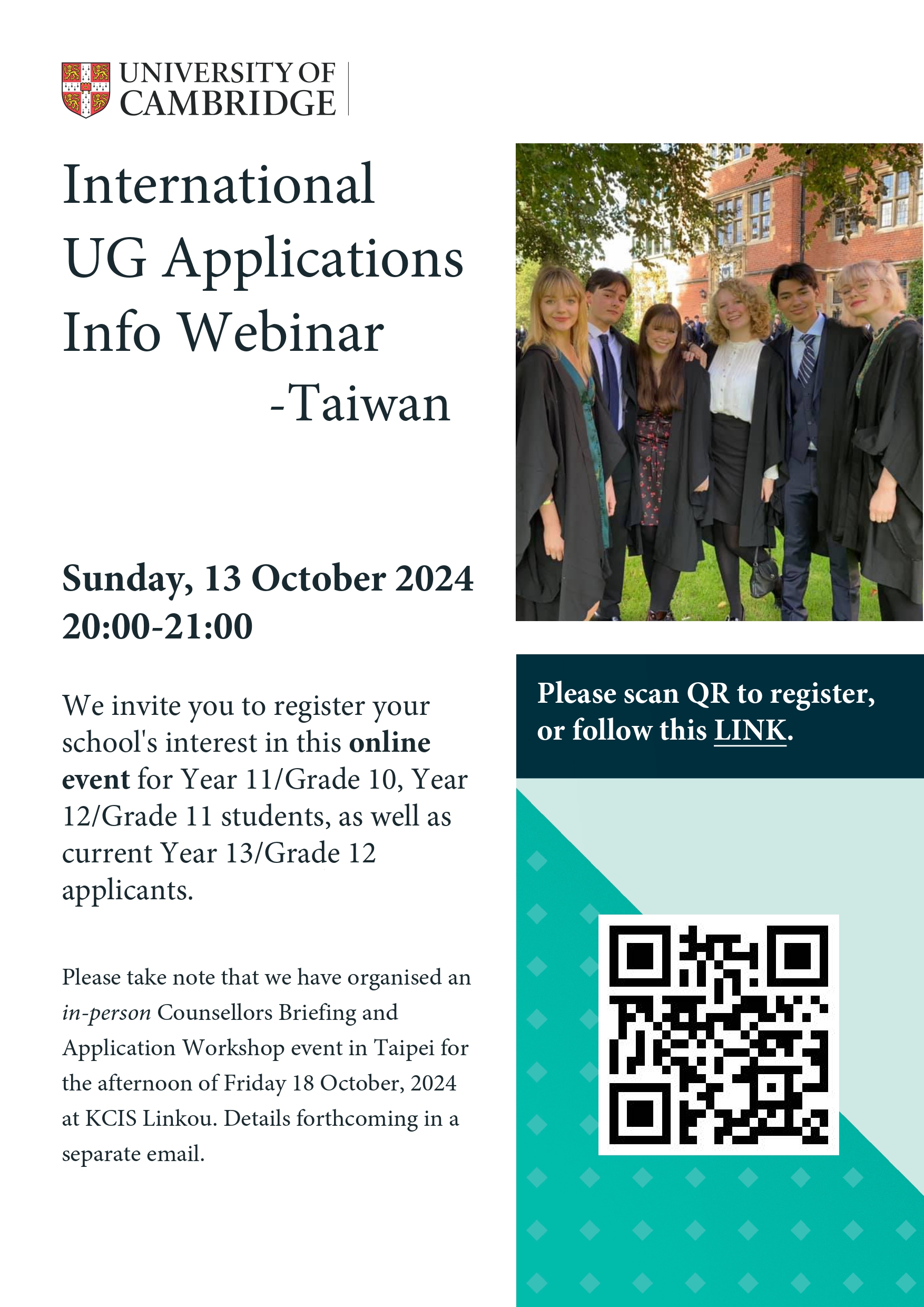 有興趣參與2024年10月18日劍橋大學招生說明會的同學,再請參閱資訊並自行報名。