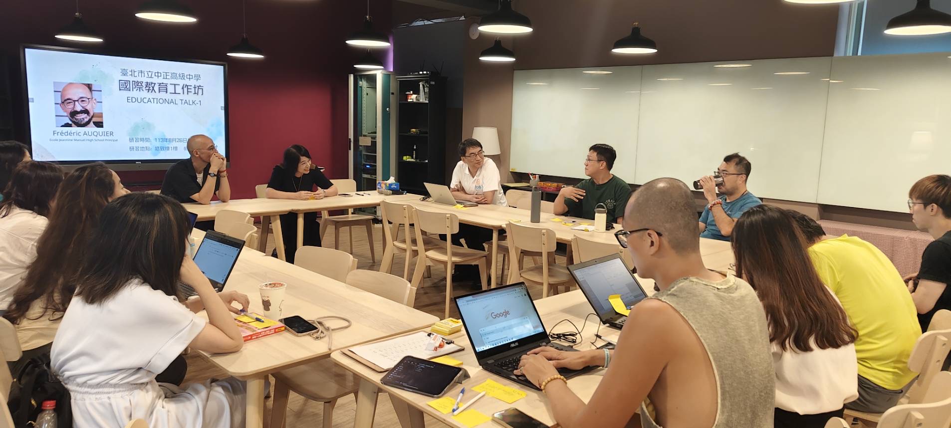 在本次國際教育工作坊中,法國Ecole Jeannine Manuel校長Frédéric AUQUIER與教師們共同探討全球教育趨勢與創新教學法。他分享了如何透過自我覺察的四個步驟,幫助教師重啟對教學的認知與思維,進而提升教學品質與學生學習效果。