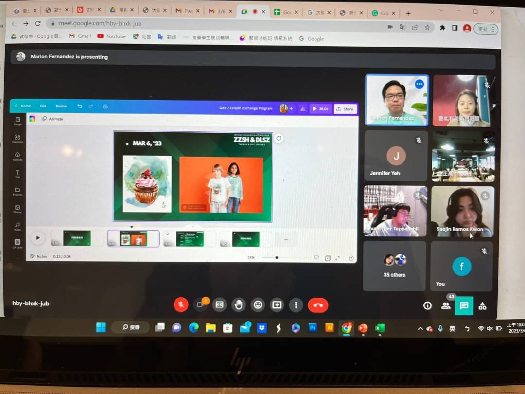 本次藝術交流課程的主題為Delicious Art Museum--透過分享家庭傳統美食的記憶進行選題與創作。課程的前40分鐘為昭慧老師和Mr. Marlon Fernandez老師的示範教學,首先講述年節餐桌上的美食主題故事與水彩示範,接著示範運用設計軟體Canva的功能將畫作去背後,合成在商品上做應用。課程的後20分鐘學生們分為六個小組透過breakout rooms進行小組討論與分工,中正高中美術班120的學生們表示,菲律賓的同學們很認真也很友善,小組互動良好,透過共同討論合作的內容與細節使得創作難度降低很多,製作過程很順利。