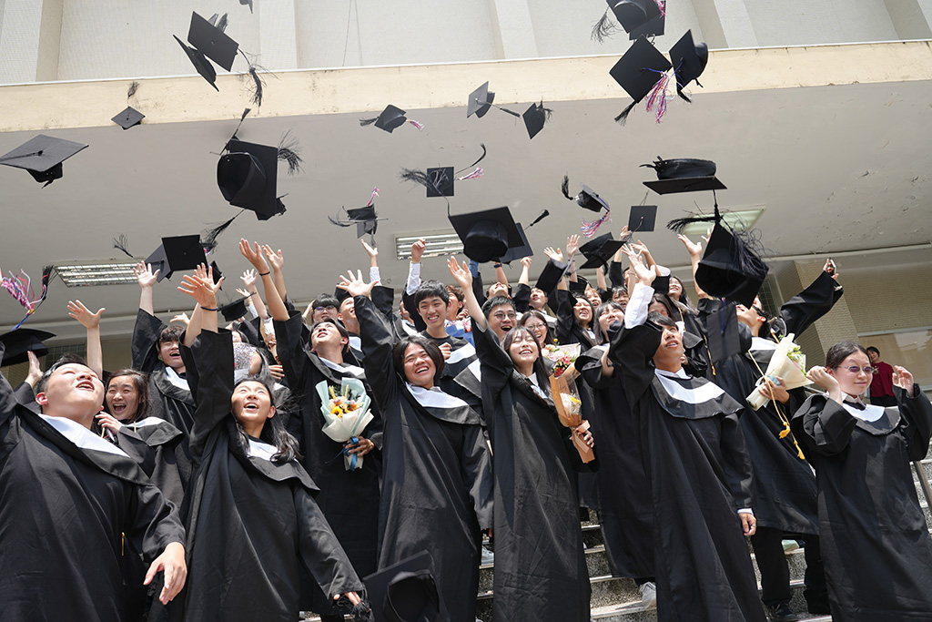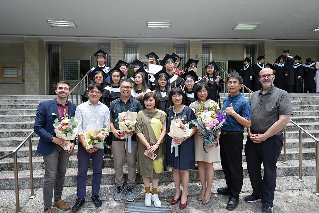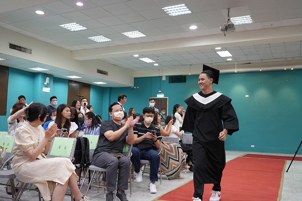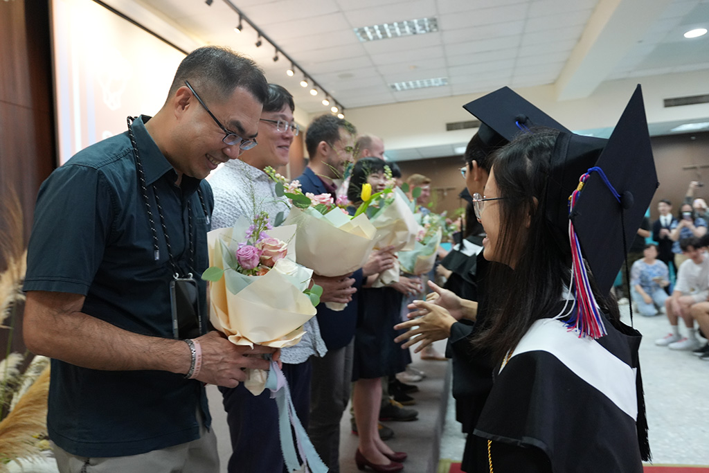 頒發畢業證書時,畢業生逐一與師長合影,家長也一同入鏡,在鮮花的襯托下留下珍貴的照片、見證他們的成長。最後,學生們完成撥穗儀式,象徵正式完成學業,在歡樂的氣氛中結束這場典禮。