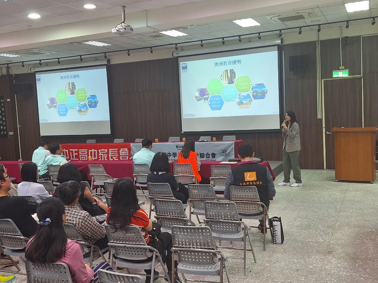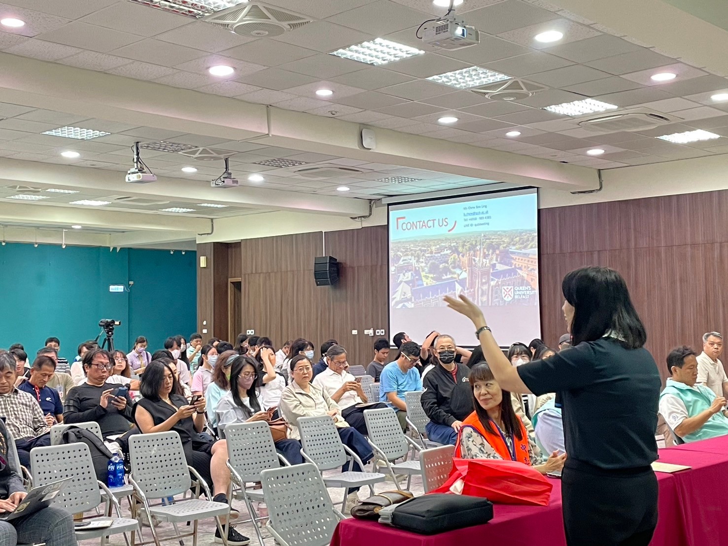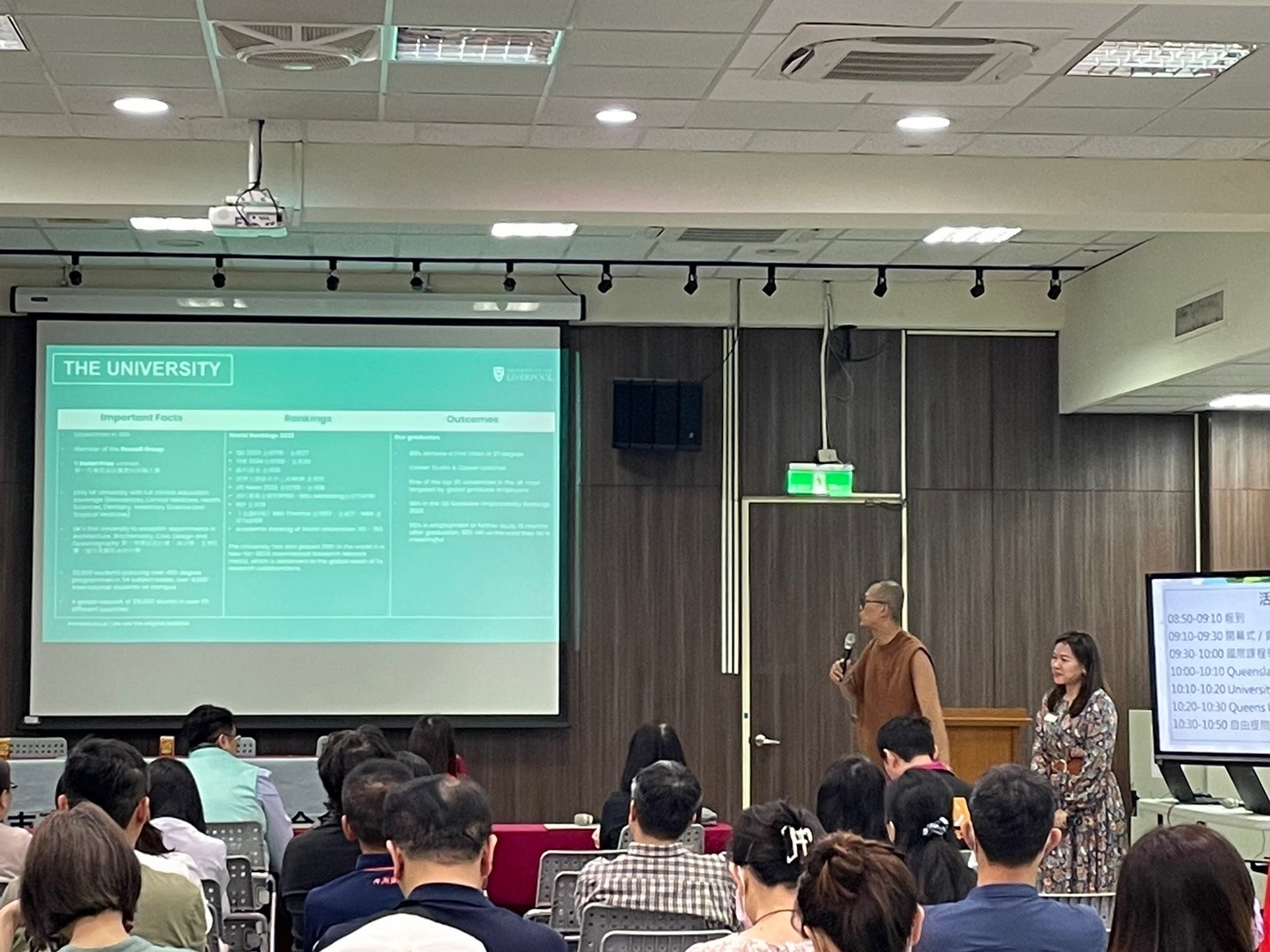 來自澳洲昆士蘭科技大學、英國利物浦大學和英國女王貝爾法斯特大學的國際學生招生官為87名臺英大學預科課程(IFY)學生和家長分享升學資訊,如各自學校的學術要求、英語語言要求和獎學金制度,並分享了國際學生在該校就讀的情況。他們耐心地解答學生及家長對於海外升學的疑惑。