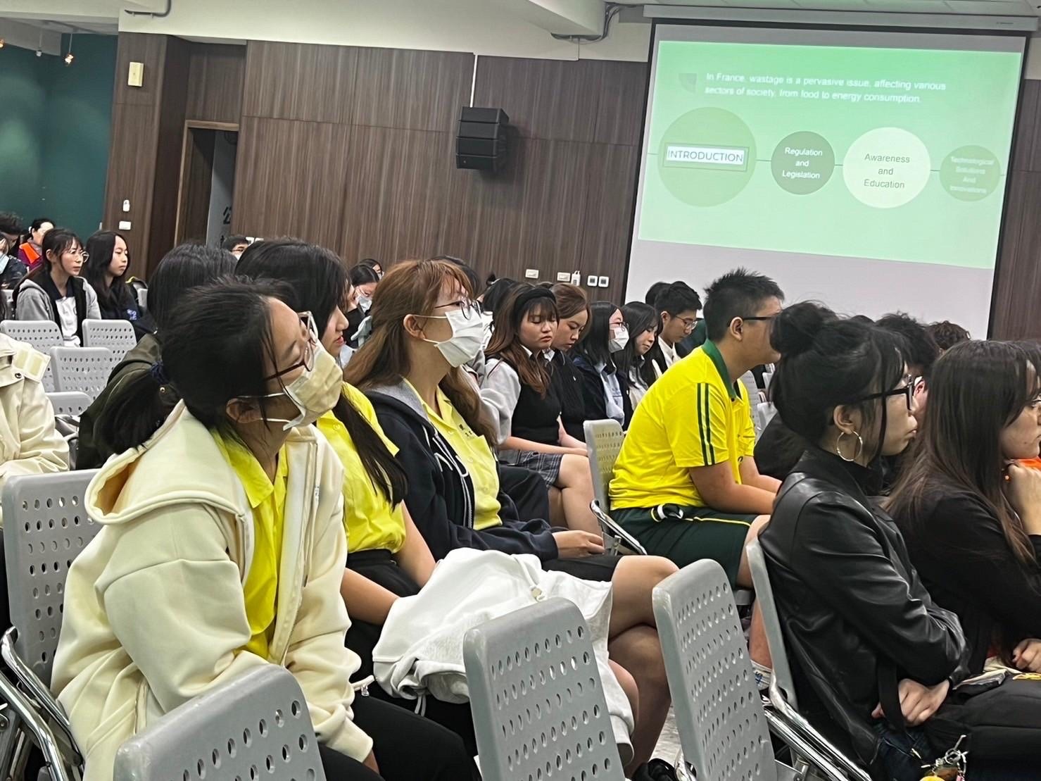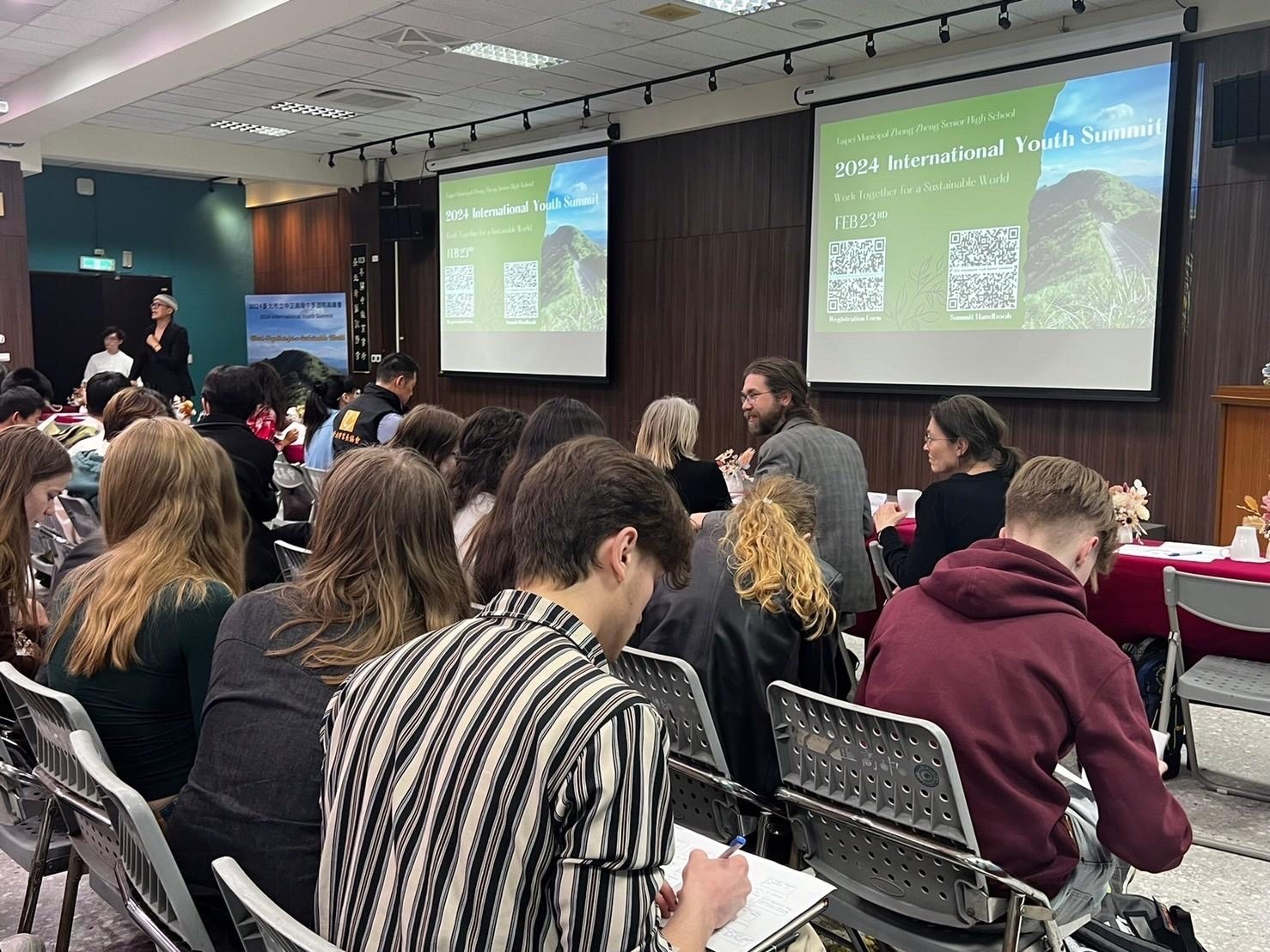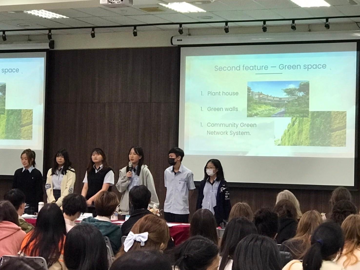 The onsite participants included 180 students from 8 Taiwanese schools, including Zhongzheng High School, Yu Cheng High School, Wan Fang High School, and Jingmei Girls' High School, as well as 20 students from countries such as France, Germany, Spain, and Sweden. Online participation involved 26 students from Japan, the Philippines, and France. The whole event was conducted entirely in English and in a hybrid format. Experts discussed climate change and sustainable urban development, emphasizing the importance of green employment and interdisciplinary sustainable development education. Student presentations covered diverse topics such as ecological services, housing solutions, and environmental challenges faced by different countries. The event was wrapped up with a sustainable meal gathering, where students exchanged cultural experiences, highlighting the importance of practical sustainable development initiatives.
