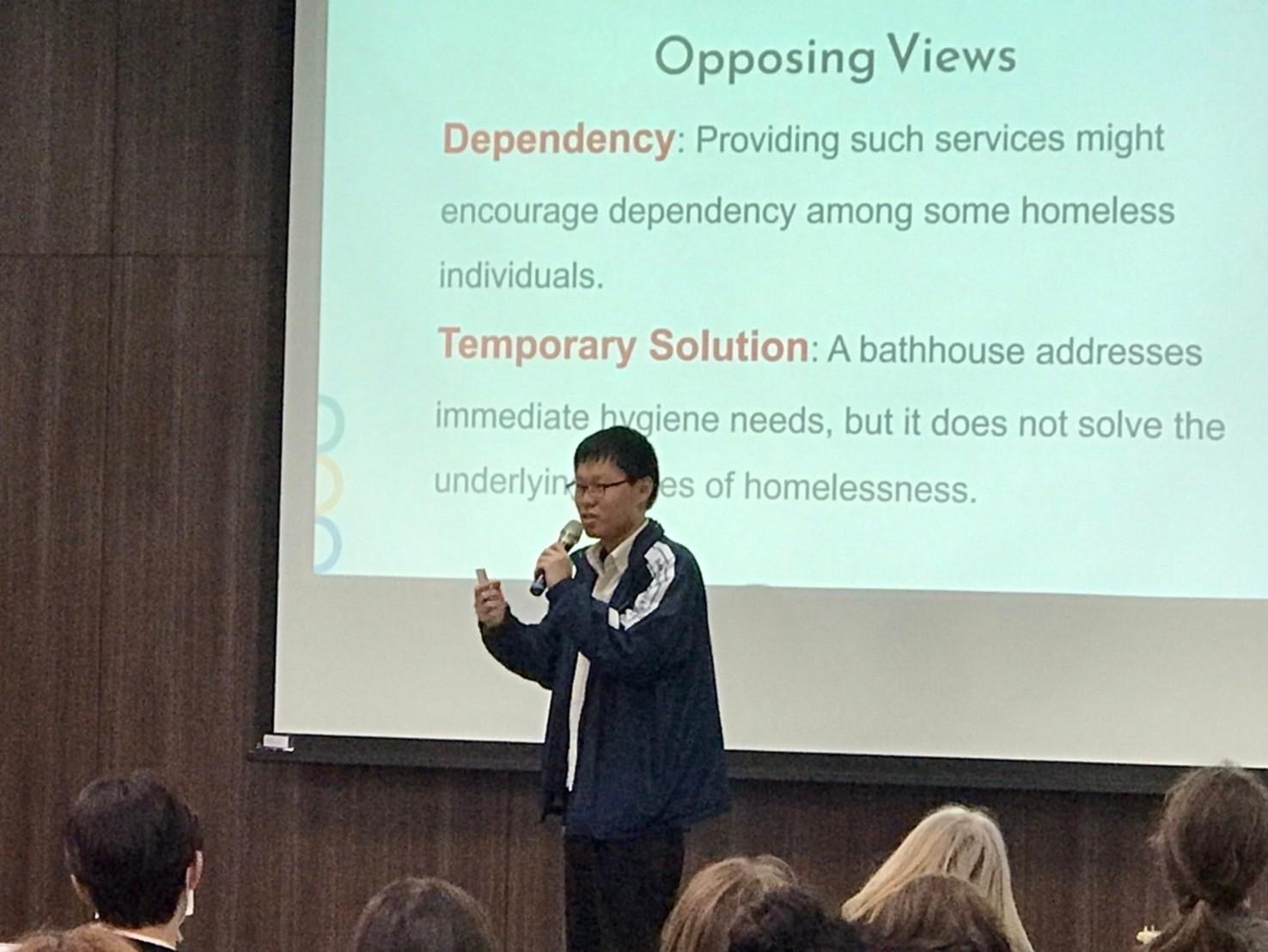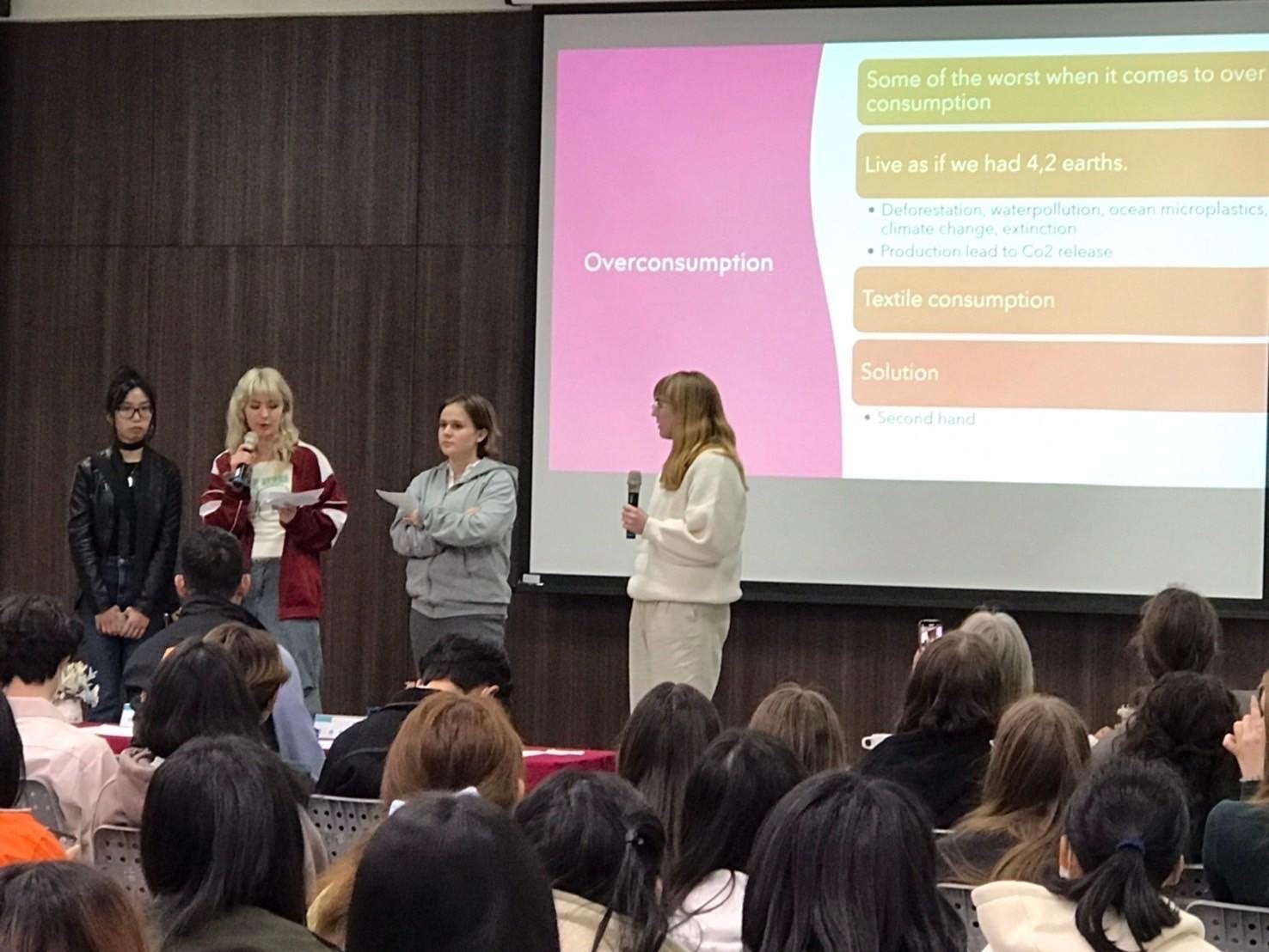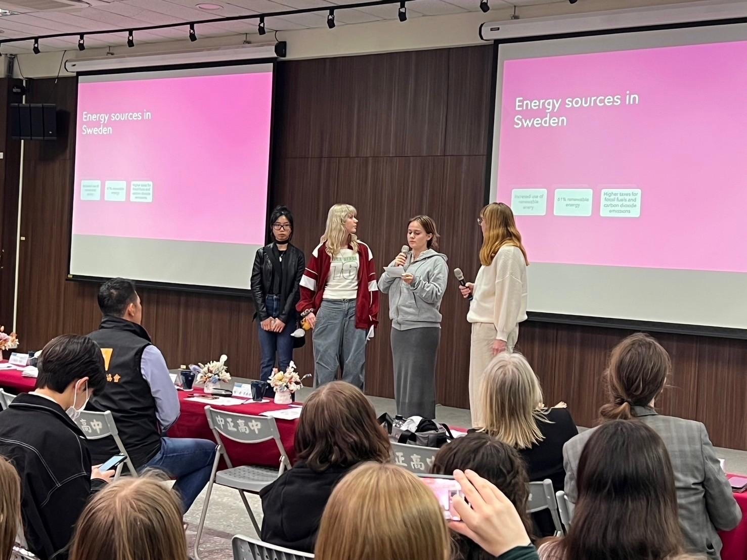 The onsite participants included 180 students from 8 Taiwanese schools, including Zhongzheng High School, Yu Cheng High School, Wan Fang High School, and Jingmei Girls' High School, as well as 20 students from countries such as France, Germany, Spain, and Sweden. Online participation involved 26 students from Japan, the Philippines, and France. The whole event was conducted entirely in English and in a hybrid format. Experts discussed climate change and sustainable urban development, emphasizing the importance of green employment and interdisciplinary sustainable development education. Student presentations covered diverse topics such as ecological services, housing solutions, and environmental challenges faced by different countries. The event was wrapped up with a sustainable meal gathering, where students exchanged cultural experiences, highlighting the importance of practical sustainable development initiatives.