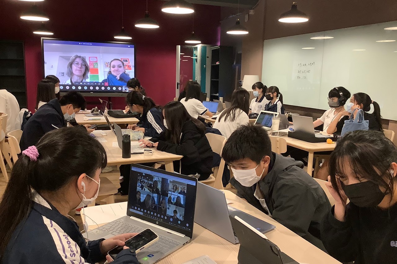 中正高中臺美雙聯學制高一學生即將與法國奧詩國際學校的高三學生共同進行社區行動服務(Community Action Service)合作課程,在11/18的相見歡(Ice Breaking)中,法國學生分享了個人興趣及喜愛的社區服務,例如:為慈善機構食物銀行募物資、到幼兒園教兒童英文、為學校地區清潔環境等志工服務,中正高中的學生則一一介紹個人的興趣、未來想從事職業等。此次的線上會面讓中正高中學生產生許多創意的想法與點子,也更加期待接下來與奧詩國際學校的合作課程。