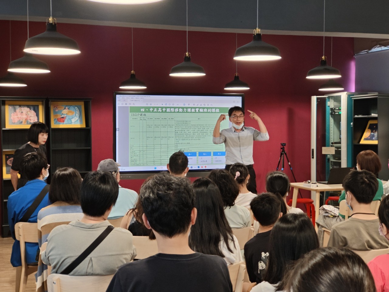 本次活動首先由江惠真校長進行本校招生介紹說明,詳細介紹本校國際課程特色班,並讓來賓實際了解本校擁有的優良辦學精神與豐富的學習資源,並於QA時段回覆來賓對於本校招生上的相關問題。招生說明結束後,來賓分為家長與學生兩個部分進行活動,家長部分由許孝誠主任先帶領家長進行校園導覽,參觀校園環境,導覽後回到情境教室進行校訂必修課程體驗。